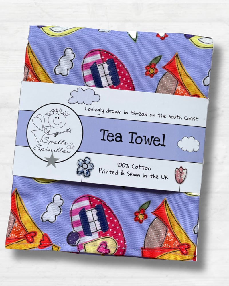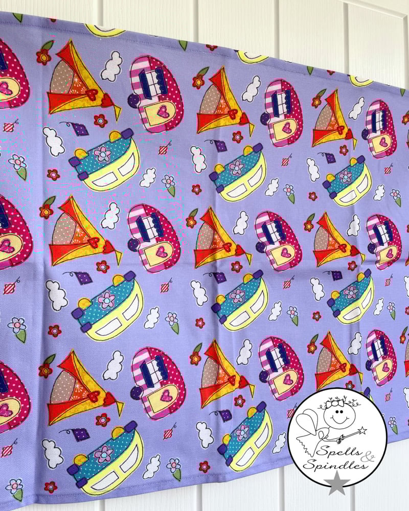 This fun campsite pattern is a print taken from an original piece of free motion embroidery.