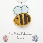 A glittery gold bumblebee brooch made entirely from free motion machine embroidery.